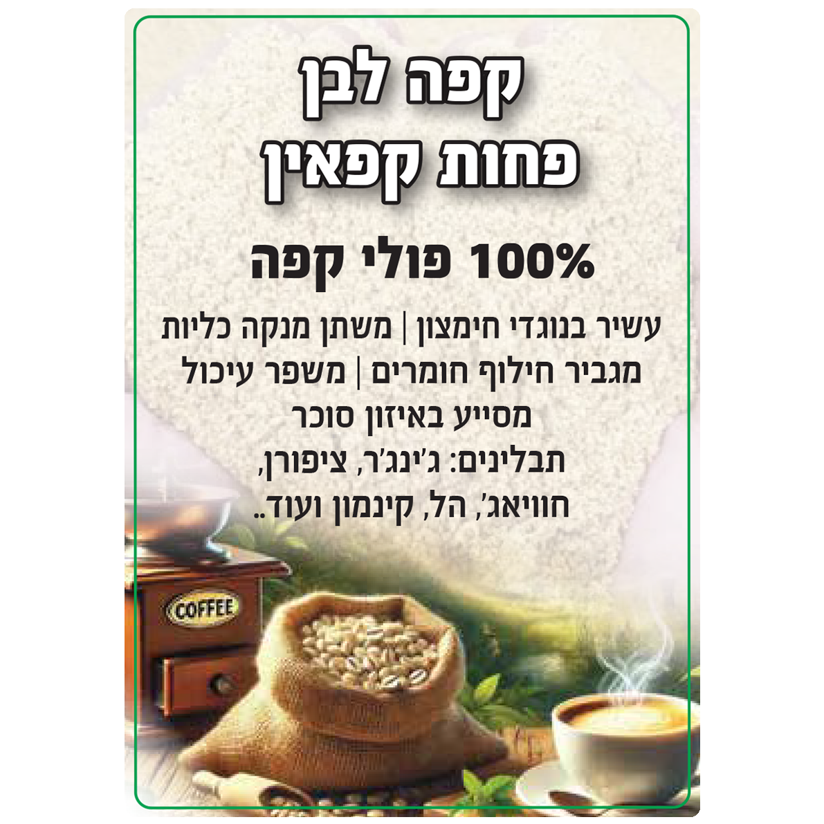 קפה לבן טחון פחות קפאין